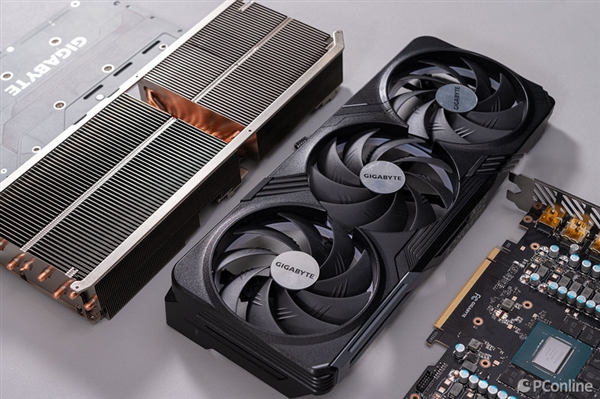 拆开看细节!卸下技嘉RTX 4080 魔鹰 16G背板的螺丝即可分离PCB与整套散热系统。