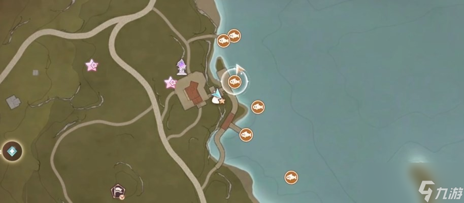 一共有八个钓鱼点,下图之中有六个钓鱼点位,能钓出粉色缎带鱼。