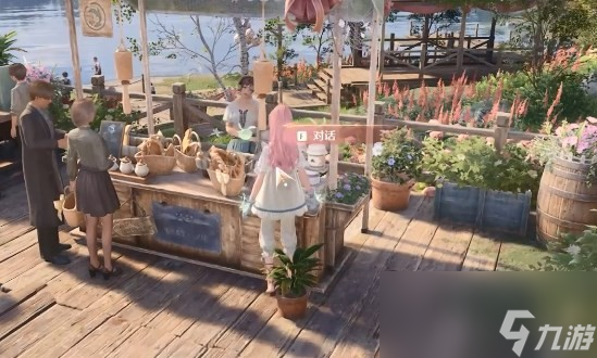 钓上鱼之后,来到悠悠垂钓协会花愿镇分部。跟下图npc进行对话,使用粉色缎带鱼兑换奖励。