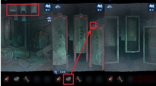 前往【喜送阁】,点击房顶吊着的棺材,选择道具栏中的【长命锁】挂在最右侧棺材的钉子上,获得八卦的线索。