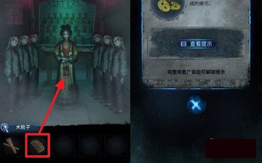 打开地图前往【纸人庙】,在道具栏选择【木梳子】交给魕娘子,获得【骨币】。