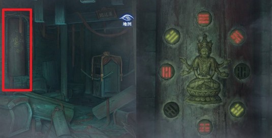 打开地图前往【喜送阁】,结合之前在房顶吊着的棺材处获得的线索,以及刚才在称骨斋桌子上获得的线索,为所有八卦标记选择正确的颜色(注意完成后有音效小高能)。