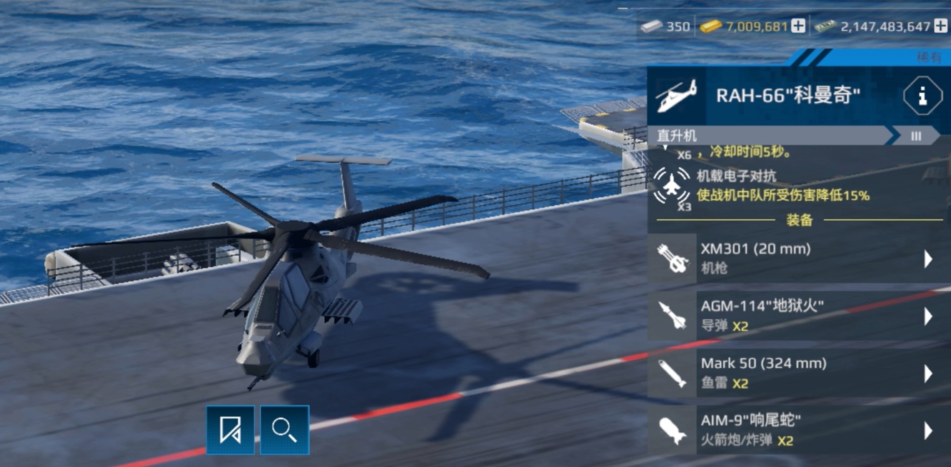 科曼奇是玩家们在商店就能直接购买到的直升机,当玩家们没有太多资源投入到反潜直升机身上时,科曼奇就成为了非常适合携带的选择。而且它的自卫性能比较优秀,所携带的武器不光能反潜,还能防空,在必要时也能作为点灯直升机去使用,所以整体的性价比非常高。