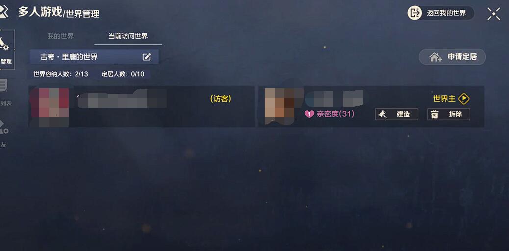 组队的话就更简单了。在好友列表里找到在线的朋友,点击他的名字会出现"组队"按钮,发送邀请后等对方同意就行。组队成功后,队长可以选择直接去打副本,或者邀请队友进入自己的世界。如果是打副本,不需要特意让朋友进入你的世界,直接在副本入口选择"邀请队友",系统会自动把申请发给队伍里的人。最多可以组13个人一起玩,但家园最多只能容纳10个人定居,所以建家的时候要注意人数限制。