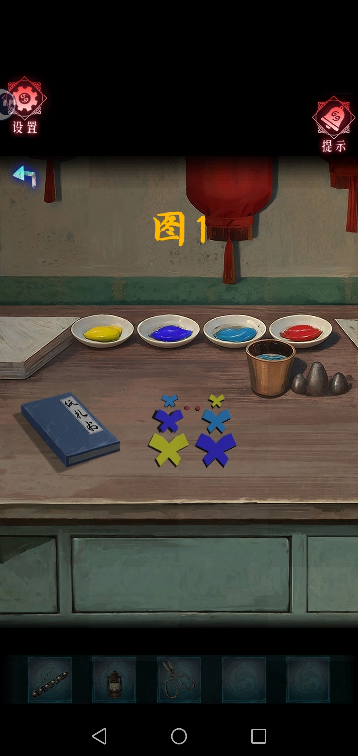 来到中间的房子里,点击灯笼下面的桌子,点击白纸完成小游戏