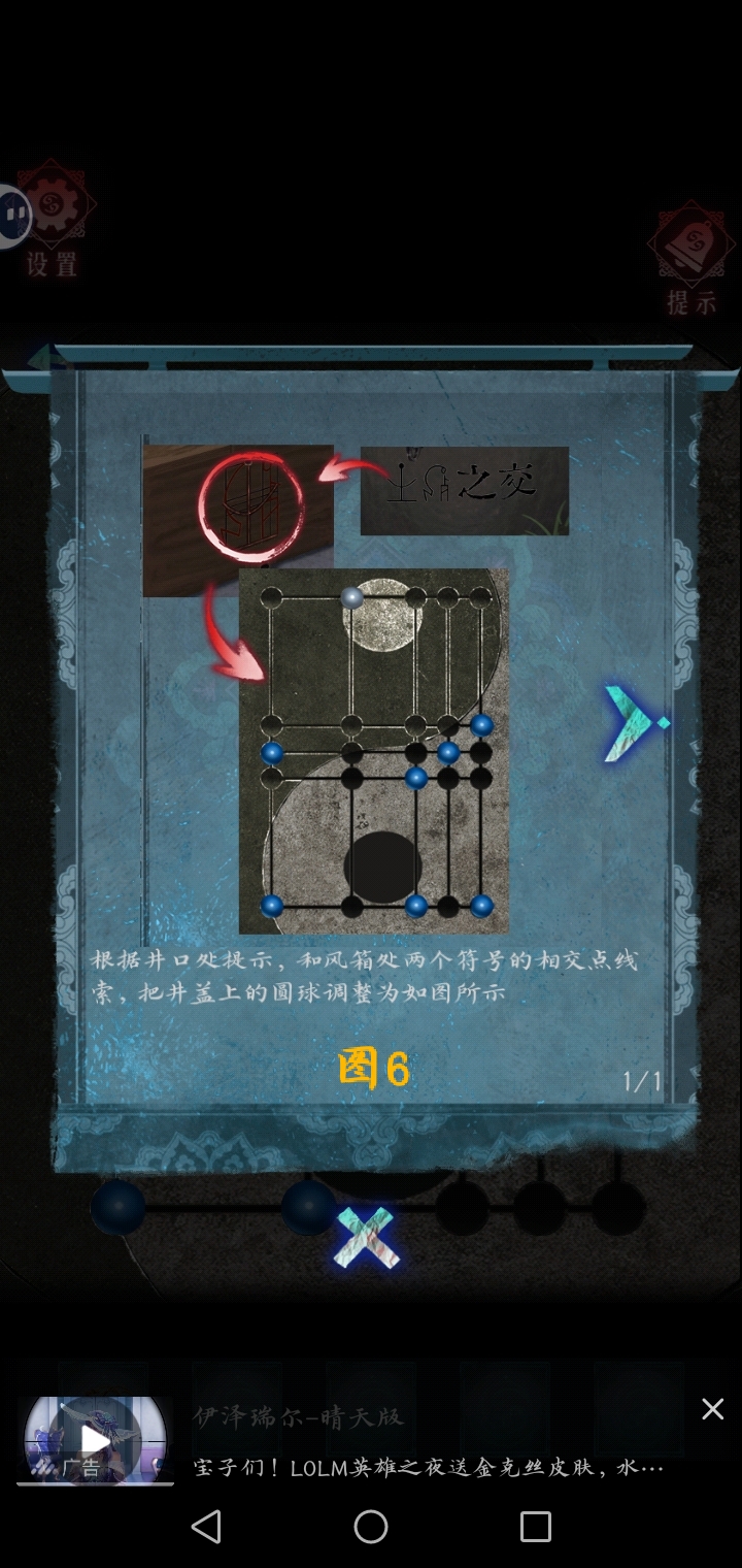 来到后院点击井,放入白色圆石头,根据井口处提示和盒子符号相交点调整石头即【图6】