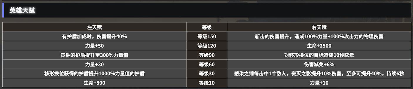 在天赋加点方面,寂灭之影有两条发展路线可选。左天赋路线主要强化输出能力,包括提升力量属性、增强护盾效果和提高斩击伤害等。右天赋路线则侧重控制能力,增加伤害减免、提升感染之镰的效果,最重要的是在90级时可以给移形换位的目标附加10秒眩晕效果。从实战价值来看,建议优先将左天赋点到60级强化丧钟护盾,然后是右天赋的90级眩晕效果,接着再补左天赋的90级移形护盾强化,最后考虑右天赋60级的感染之镰伤害提升。