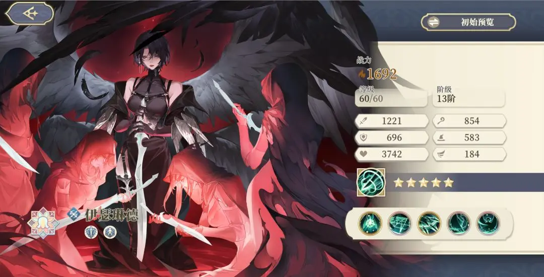 伊瑟琳的是一个属性极为出色的角色,在初始阶段的她其物理攻击力就由1221点,魔法攻击力就由84点、基础物理防御值为696点、生命值为3742点,移动速度184点,最终的要是琳德还是第一个近战使用剑,远程使用弓的攻击角色。