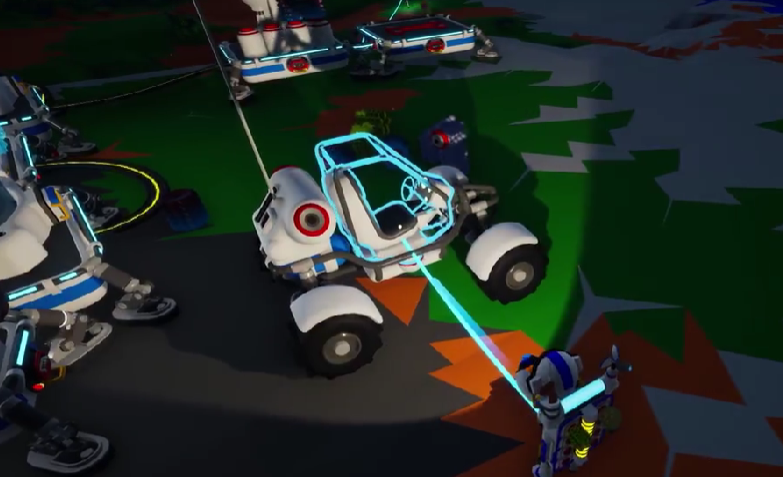 把东西全都收集齐全以后,玩家就可以使用大型工具把这些做车的材料给合成一下,这样小车车的框架和漫步交通局就出来了,然后玩家直接把漫步交通工具给安装到小车车上面就,一辆小车车就这么制作出来了。