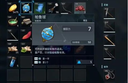 4、使用道具对帕鲁球进行升级,可以增加捕捉力,进而增强成功率,还能捕捉更高级的怪物。