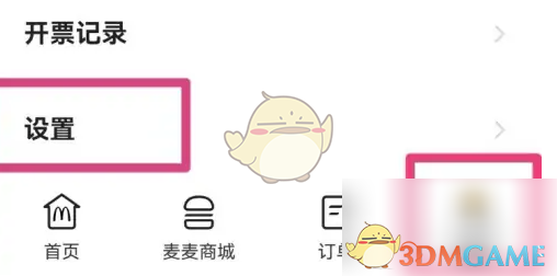 1、打开手机麦当劳app,点击右下角“我的”,进入新页面,点击页面下方的“设置”。