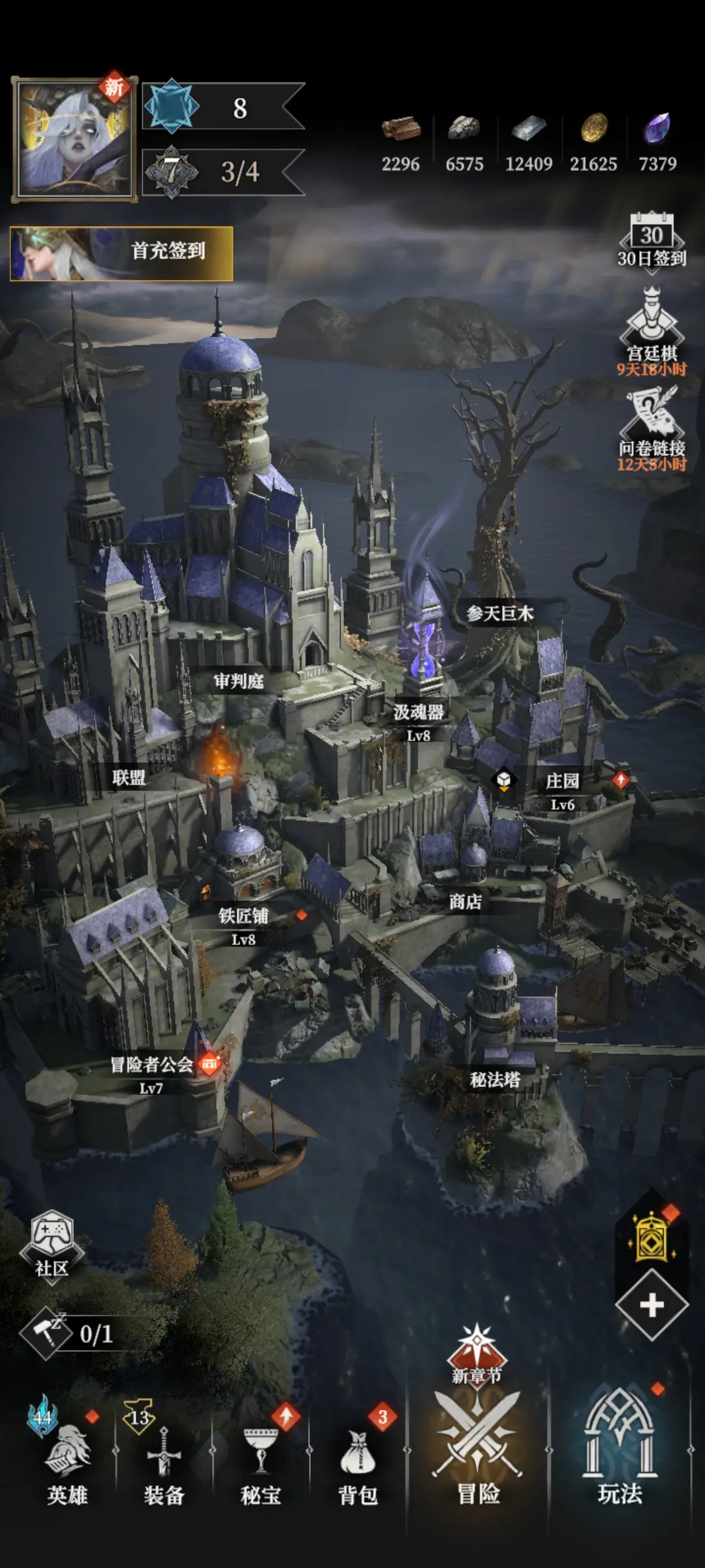 每个建筑的功能要记得看看了解下,这样才能少走弯路。建筑升级要有优先级排序,前期需优先汲魂器和庄园,因此要尽早的攻克墓穴副本解锁汲魂器哦!其升级直接提升魂火净化效率,毕竟关乎着英雄等级上限。接下来铁铺和冒险公会可以适当的给到些。