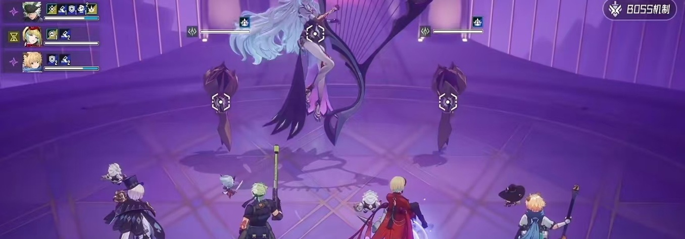 要知道游戏中的boss他的机制是和他的技能是息息相关的,想要了解他的机制,那么对他的技能了解可不能少,莎郎有一个主动技能叫做小步舞曲,小步舞曲是一个范围广泛的伤害可以对所有的角色都造成伤害,并且使自身的行动条进度提前,在此之外还增加了增加自身速度的增益效果,而前奏曲也是群体伤害,它不仅可以直接将目标击退,还可以直接将对方的行动条降低并触发持续伤害的结算,属于是比较阴的技能了。