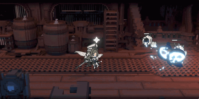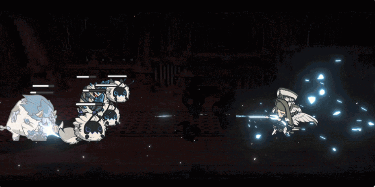 1技能“宽容分发”,快速旋转对周围的地方射出6枚子弹造成损伤,施放时会使用所有的主祭的关怀,每消耗1层,就会额外射出1枚子弹,每一枚子弹均造成较高的枪弹伤害,也添加冰元素侵染效果;当拥有6层时,重击会被强化,子弹造成的冰元素伤害会使她获得”主祭的博爱”。