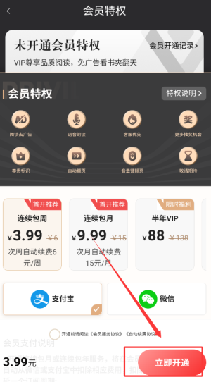 3、确认价格后点击支付,支持微信、支付宝等多种付款方式,支付成功后即可立即享受会员特权。