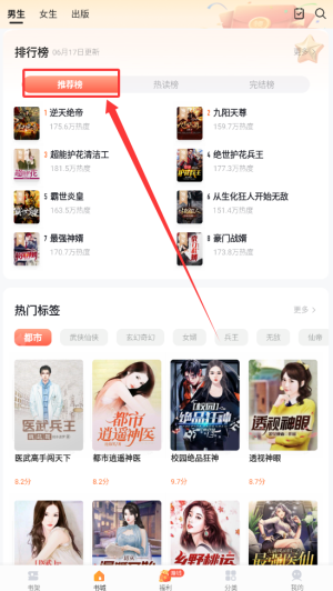 1、查看推荐书籍,首先打开应用后会自动进入首页,这里会展示热门推荐和新书上架板块。