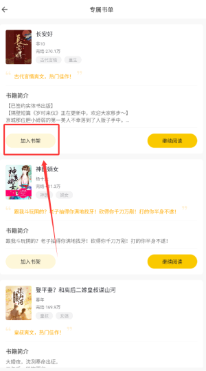 3、在右上角可以看到“加入书架”的图标(通常是一个书签或加号形状),点击该图标即可将当前小说添加到个人书架中。