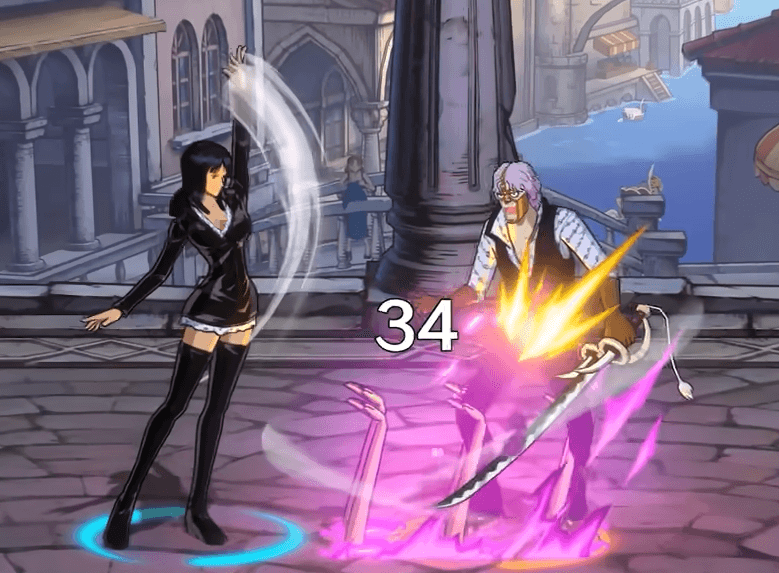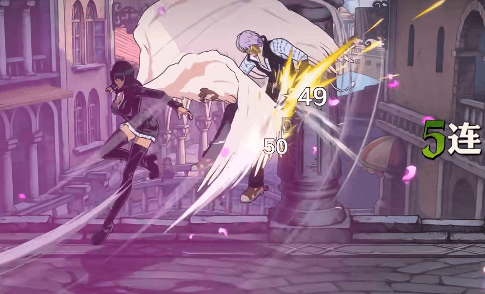 罗宾的“翅膀”在短按后,可以让自身在翅膀的助力下旋转起跳,并将敌人击飞到空中,在这个飞行期间可闪避飞行道具,她的“白目开花”一段能快速后撤转身,在转身期间能闪避飞行道具,并在后撤前的位置留下一束长有眼睛的手臂。