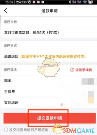 3、点击申请退款,核对退款相关信息,点击提交退款申请即可。