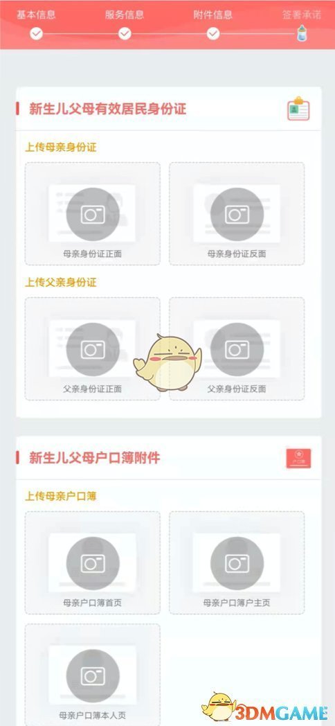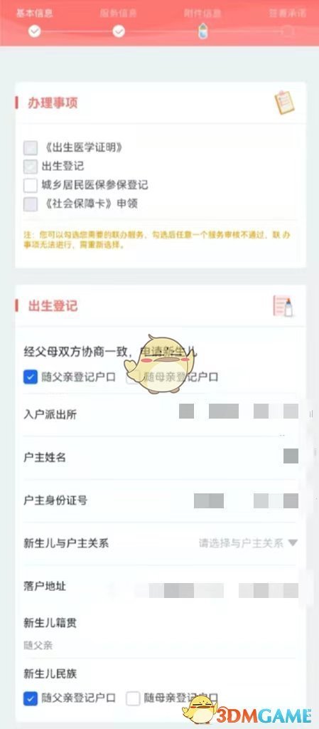 5、按照提示内容填写相关内容,勾选要办理的事项,上传身份证、户口簿等材料图片,进行电子签名,点击“确认提交”即可。