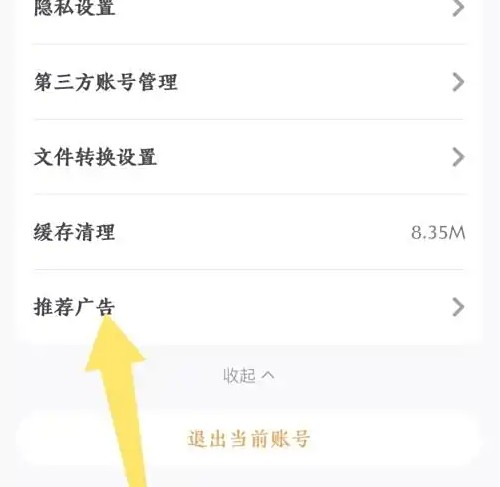 小白学习打印怎么关闭广告,在我的页面,点击顶部的设置图标,在设置页面,点击展开更多选项,在展开的选项中,点击推荐广告打开,在权限设置页面,点击推荐广告选项关闭。
