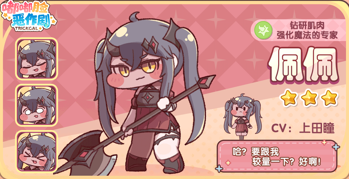 佩佩是魔女队伍里性格非常直爽的角色,手里挥舞着大斧头,战斗力可不容小觑。在遇到麻烦时,佩佩可不喜欢绕弯子,直接冲上去就解决问题,玩起来也特别轻松。只要把佩佩放到前排,作为一个物理输出型坦克就行了,其他的配角可以根据需求选择输出或者辅助,整体阵容就能搭配得很好。