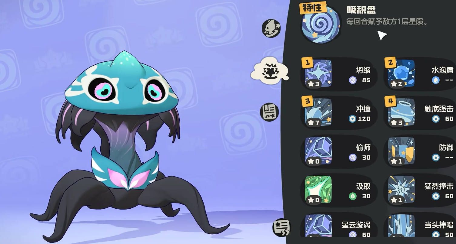 哭哭菇可在24级时进化成为怖须菇,再养成至38级后就能进化成为怖哭菇,在进化时都不需要额外的条件,等级到了后便能直接点进化改变它们的形态。此外,哭哭菇家族都拥有吸积盘的特性,能每回合赋予敌方一层星陨,令它们能在星陨队中拥有一定的上场空间,尤其在需要对付一些毒系和武系的精灵时,安排幻系的哭哭菇家族上阵会起到很不错的效果。