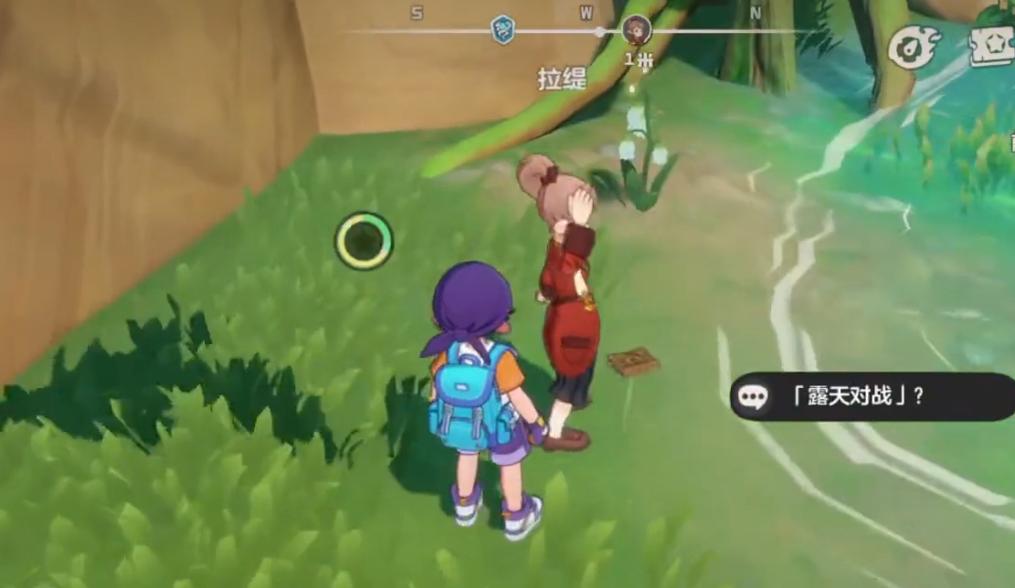 拉缇相对来说较为好找,各位传送到梦兽之森下方的炼金台后,朝着东边偏南一点点的方向走到连接两座山崖的桥上,跳下去后就能看到水边的拉缇,与她互动便能通过露天对战选项来开启对决。本场露天对战共计需要战斗两次,拉缇第一次会上两只精灵,分别为遁地鼠和铠甲虫,且它们都为地系。而在第二次对战时,除了遁地鼠和铠甲虫外,拉缇还会多上一只虫萌双系精灵化蝶,场地效果为每回合随机一个技能能享受到能耗减3的效果。