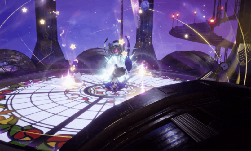 星幕生成的瞬间,对范围内清醒的敌人造成睡眠效果,对范围内处于睡眠的敌人,打断这种状态,造成一次高额伤害,并提升其受到的魔法系技能伤害,流星坠落命中睡眠状态下的敌人,如果她也处于梦境,就偷取其梦境,对其造成伤害,并回复自身生命值和行动力。