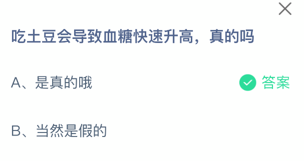 以上就是吃土豆会导致血糖快速升高,真的吗,支付宝蚂蚁庄园2025年9月28日答案最新,更多精彩内容,请点击关注0405手游网更新!