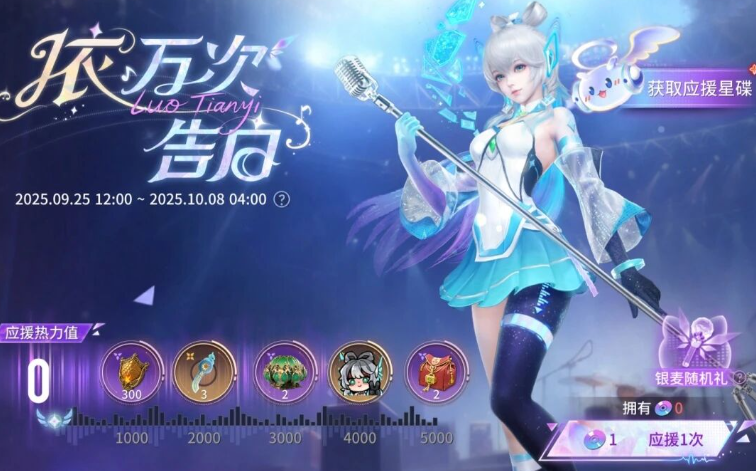 挂饰“共鸣翼”能让蓝色琉璃碎片凌空悬浮,技能特效“共鸣”可以让“光伞”变成“天钿”,技能二的“光伞”则变成闪亮的麦克风,来帮助御风滑行,奥义在装配后使用,会让胡桃高举起麦克风,随着跳跃的音符投影出蓝色的法阵,让四周环绕的麦克风跟着节拍共振,最后9月25日到10月8日会开启“依万次告白”活动,每日完成任务能拿到星碟道具,用于免费领取联动外观和其他奖励。