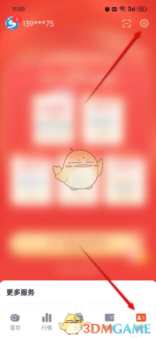 1、打开国信金太阳“账户”页面,点击右上角的小齿轮图标进入。