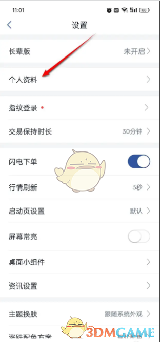 2、点击“个人资料”。
