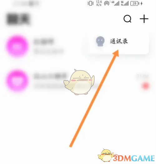 3、最后点击上面的通讯录选项,来添加通讯录好友即可。