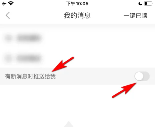 第三步:进入我的消息页面,把【有新消息时推送给我】选项关闭即可!