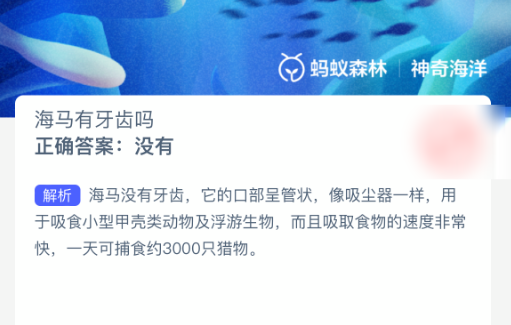 以上就是海马有牙齿吗?神奇海洋今天答案最新2025年10月1日分享,更多相关攻略内容,请点击关注0405手游网更新!