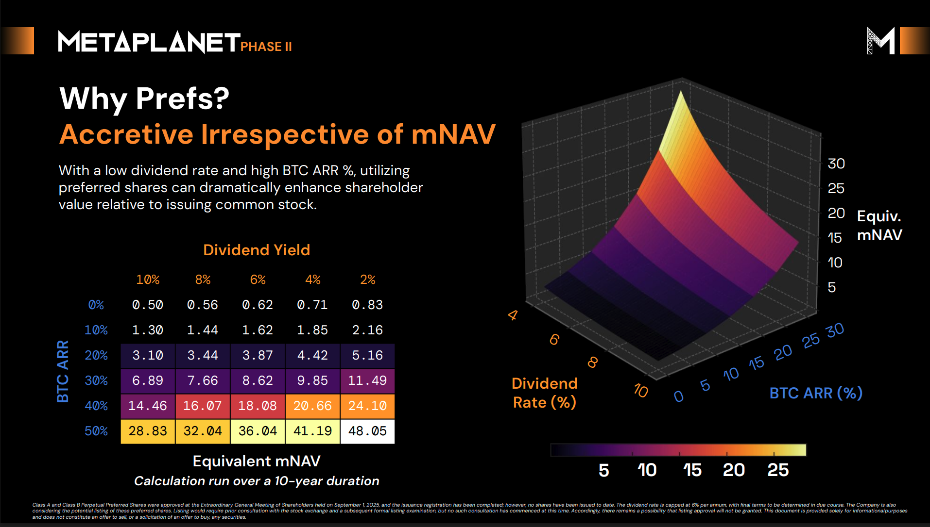 在第二阶段计划中,Metaplanet将发行股息收益率上限6%的永久优先股。该结构为投资者提供稳定收益,而比特币涨幅超过该阈值的部分将转化为企业价值增值。