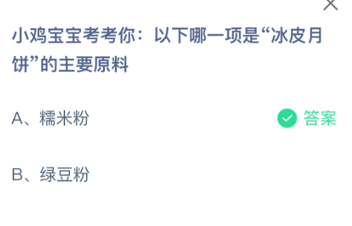 以上就是小鸡宝宝考考你:以下哪一项是“冰皮月饼”的主要原料,支付宝蚂蚁庄园2025年10月6日答案最新,更多精彩内容,请点击关注0405手游网更新!