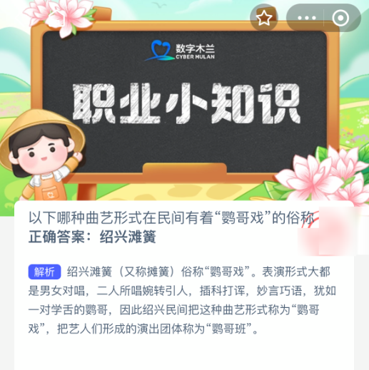 以上就是以下哪种曲艺形式在民间有着“鹦哥戏”的俗称?支付宝蚂蚁新村最新答案2025年10月7日,更多精彩内容,请点击关注0405手游网更新!