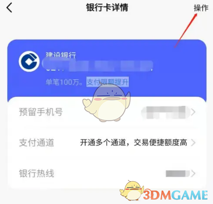 3、在银行卡详情页面,点击右上角的操作;