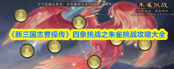 四象挑战是《新三国志曹操传》中的一个重要游戏环节,最近开了朱雀挑战,这里共有7个关卡,分别是井、鬼、柳、星、张、翼、轸,下骂我们就来看看各个关卡具体是如何过关的!