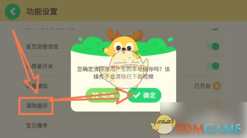 3、最后在功能设置里,点击清除缓存后点击确定即可。