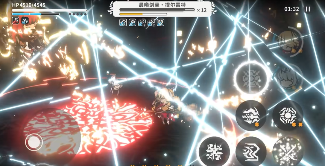 提尔雷特是一个火元素的boss,她的血量非常的厚,足足有18层,在战斗开始以后,玩家可以先切换纳叶上场,纳叶是输出型的的角色,一套攻击可以直接把提尔雷特的血量打下一去一层,提尔雷特的血量到了16层的时候会进行反击,她先会挥舞手中的巨剑跳起来径直辟向对手,这个技能玩家只要躲避就行了,把该技能躲避以后可以在继续进行一套输出。