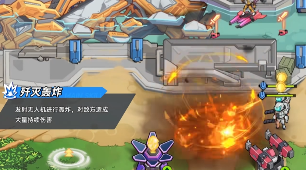 伊莉丝在战斗中的定位是输出,并且她具有极强的机动性。在有些观察中,并不是所有的怪物都从地面上来袭,有很多都是会从空中飞过来的,而此时伊莉丝的技能就能够帮助你轻松面对这样的情况。她的招牌技能歼灭轰炸,可以召唤出无人机对指定的位置进行轰炸,并且伤害极高。如果说你遇到了空袭,那么此时伊莉丝就能够发动该技能,帮助你快速地消灭从天上来犯的敌人,保卫防御塔尽量少掉血。
