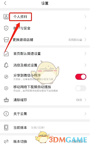 1、打开云集app后,进入设置,点击(个人资料)选项。