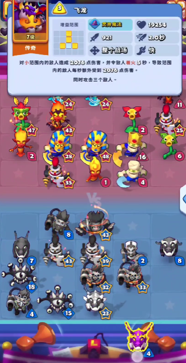 由于飞龙隶属于灵异魔法系角色,所以在搭配方面,玩家可以使用豌豆花,亦或是祭司等角色,来扩散飞龙的灵异魔法效果,使得三个单位的敌方目标判定,能够扩散成为十个目标以上。