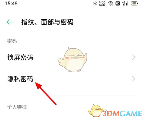 2、在密码页面,点击【隐私密码】。