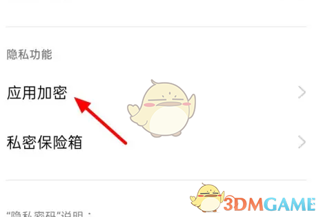 3、在隐私密码页面,点击【应用加密】。