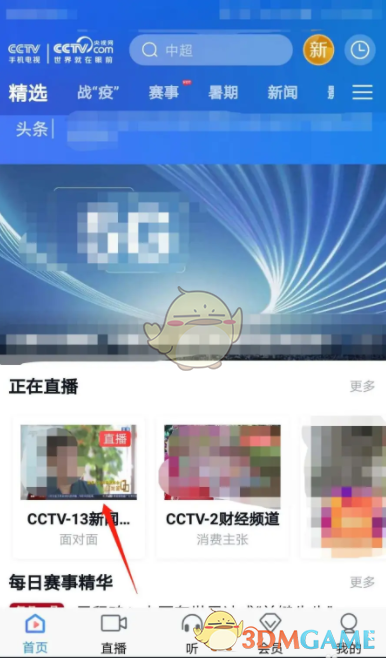 1、在cctv手机电视点击选择正在直播的电视节目。