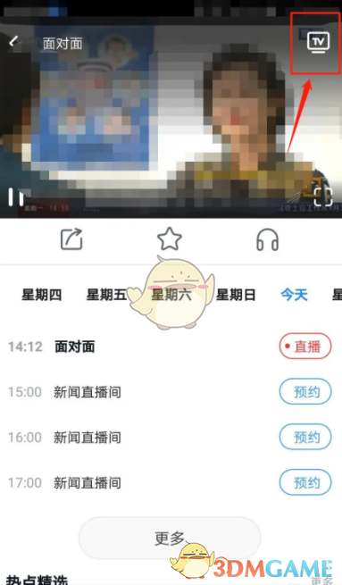 2、点击节目播放页面,然后点击页面右上角的TV投屏图标。